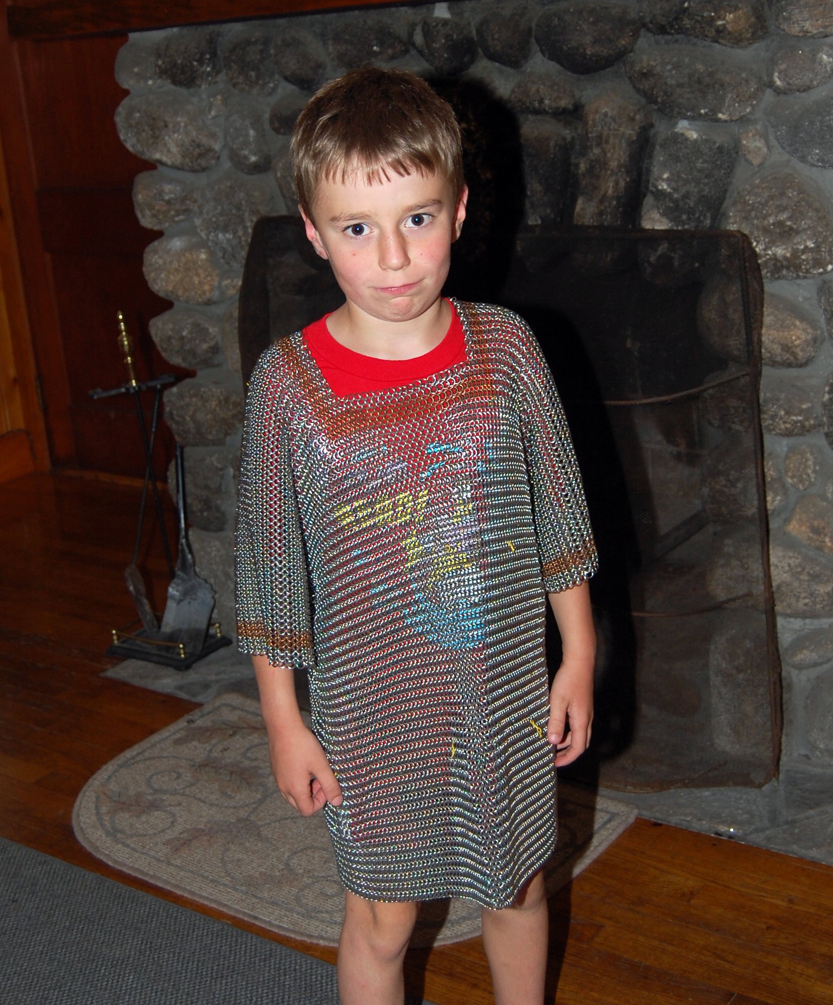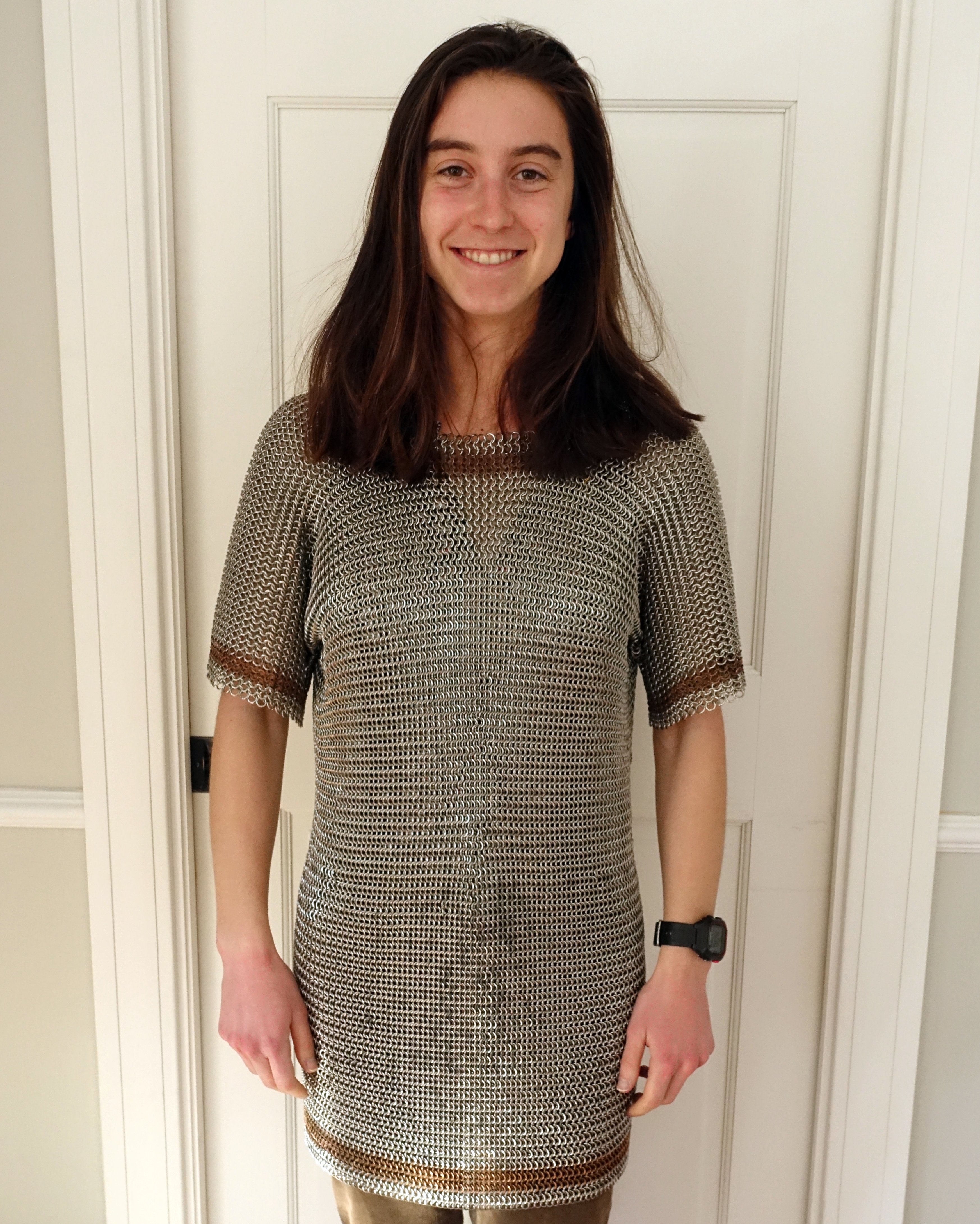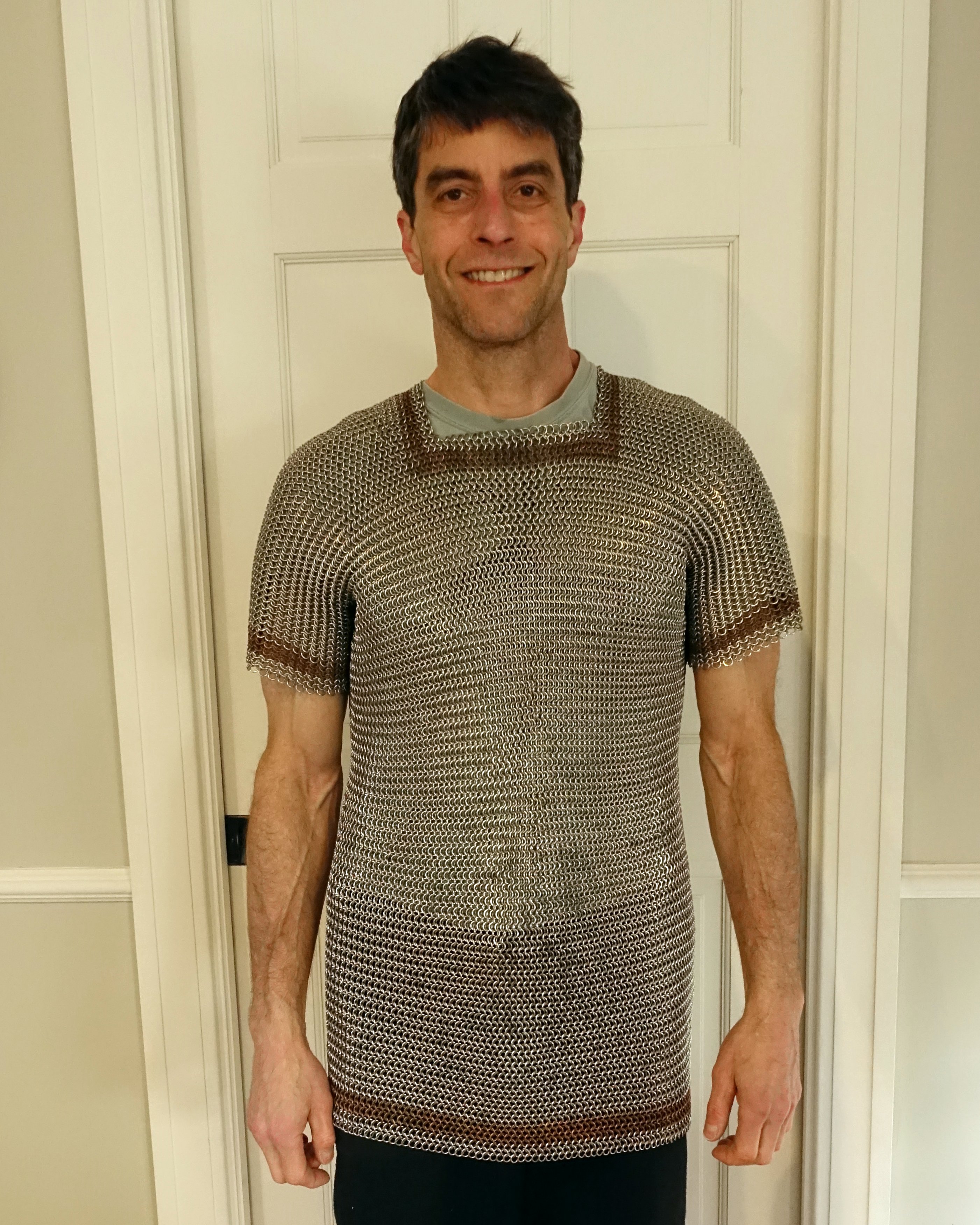 I made a chain mail shirt over the course of several summers. It weighs 24 lbs and includes over 20,000 stainless steel rings each of which I opened and closed in the appropriate relationship to its neighbors. I followed Lloyd's instructions and am delighted with how it turned out.